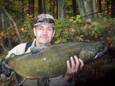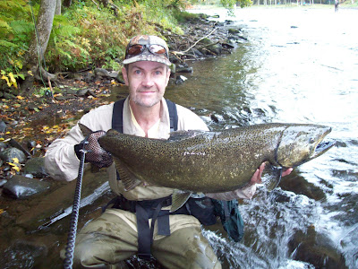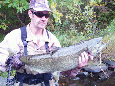 We took full advantage of prime conditions. Rain from yesterday increased the flow overnight and was good at dawn. Stained,but fishable. By late morning the opalescent green color predominated. The steel were actively feeding and we landed double digits.........