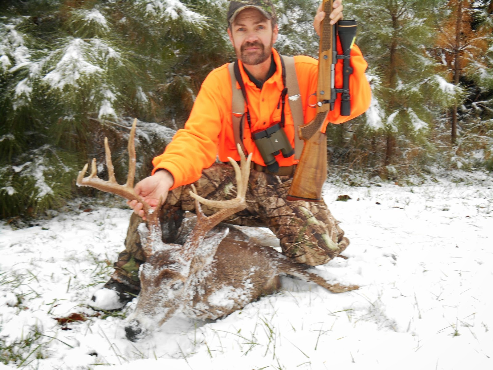 Warm was the word for the 2012 rifle deer season! The dry conditions demanded that we would hunt from stands for the most part. JJ started off the season with a nice 8 pt. in wv on day two. He used a .338 Win.Mag. w/ 200 grain accubonds. I still think he's under gunned. I took this 10 pt. in PA the 3rd day of the season. Although we did alot of glassing at the longer ranges, my shot came at under 100 yds. I did see alot of deer in both states. Second day of PA i was watching a winter wheat field with 11 baldies and two 6 points. My buck was taken with the Sako .300 WM launching 150 ballistic tips @ 3,200 FPS.This load shoots 1/2 M.O.A.